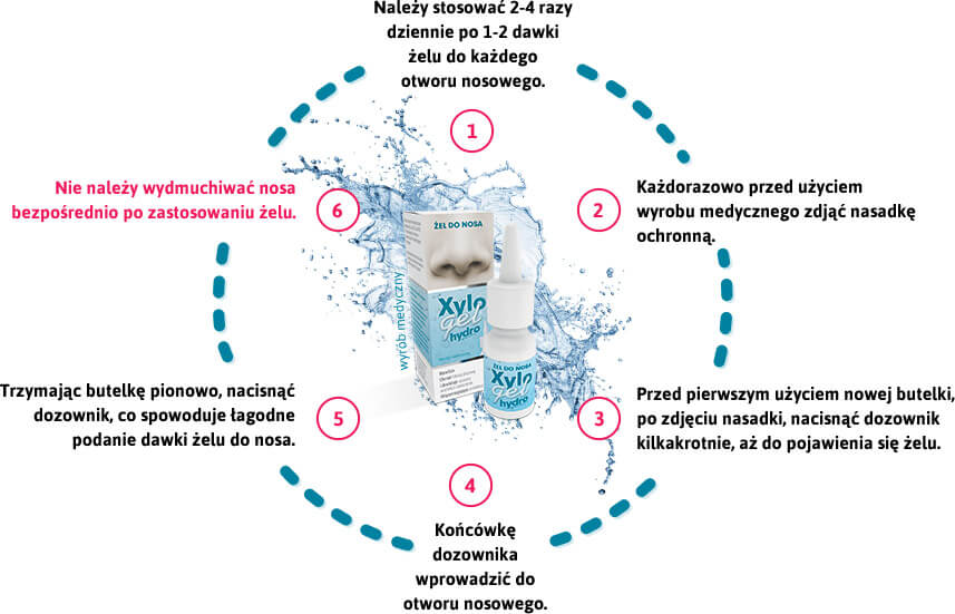 01Należy stosować 2-4 razy dziennie po 1-2 dawki żelu do każdego otworu nosowego.